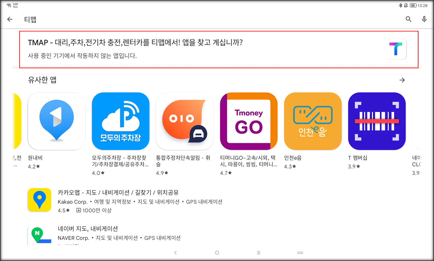 사용중인 기기에서는 작동하지 않는 앱입니다.